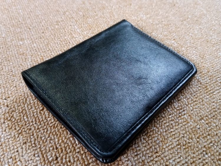 Leather wallet with multiple pockets and chambers.