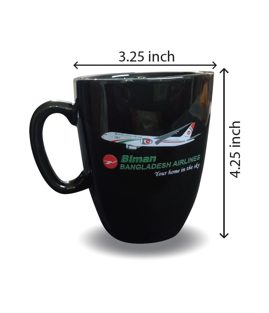 Product Details of Biman 787 Dreamliner Printed Exclusive design Black Ceramic Mug for Milk/Tea/Coffee/Water BMUG001